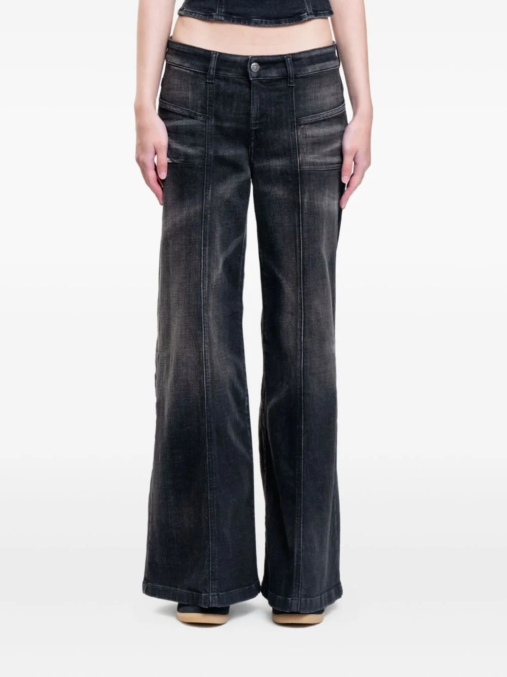 wide-leg high-waisted jeans Highlights - Black - Front button fastening - Tonal stitching - Five-pocket design - Faded finish Imported Composition Body: Cotton 99%, Elastane 1%