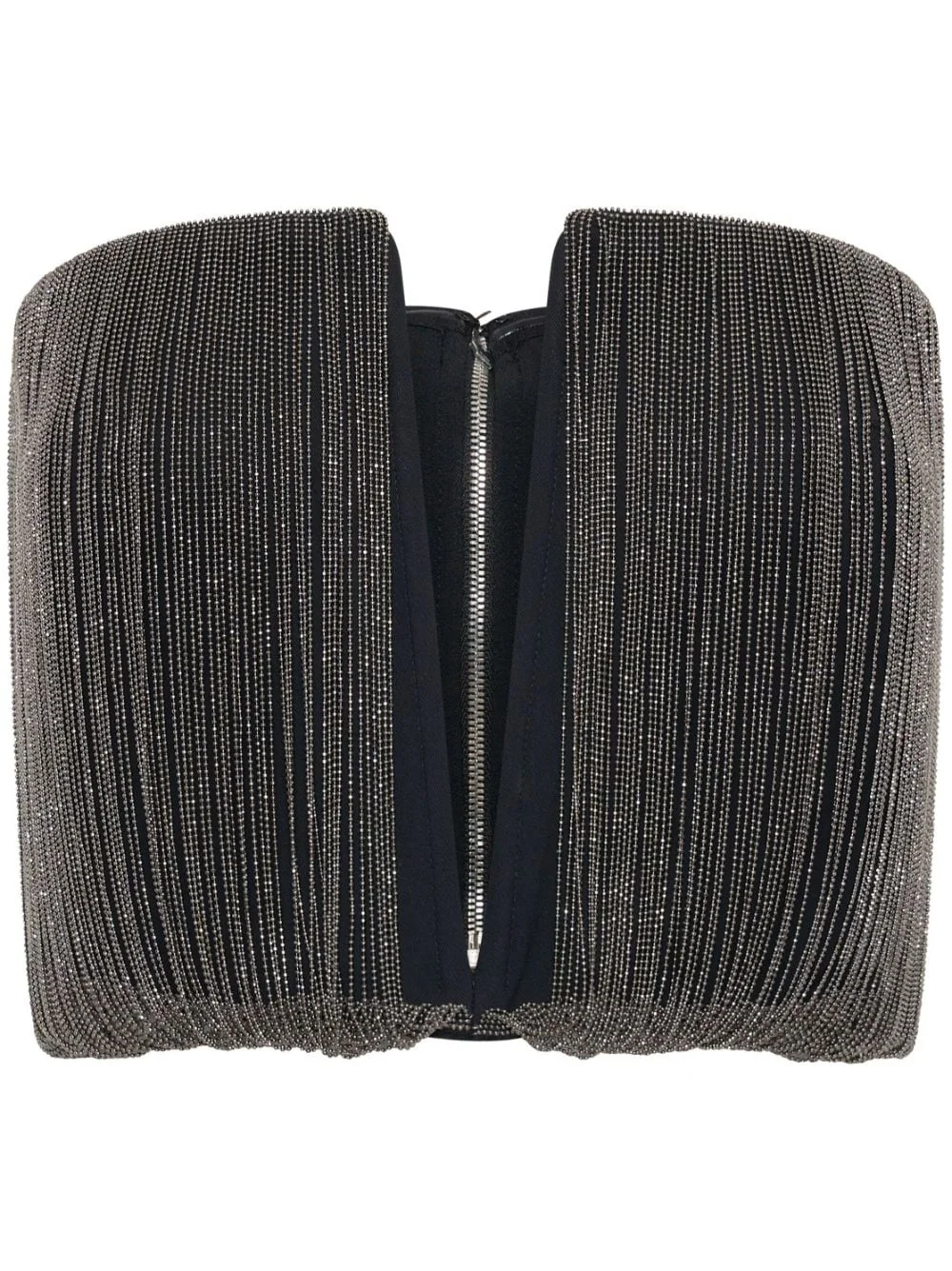beaded plunge tank top Highlights - Black - Bead embellishment - Plunging v-neck - Strapless - Rear zip fastening - Cropped straight hem Imported Composition Body: Viscose 96%, Elastane 4% Lining: Viscose 62%, Acrylic 34% Outer: Brass 100% Washing instructions Dry Clean Only