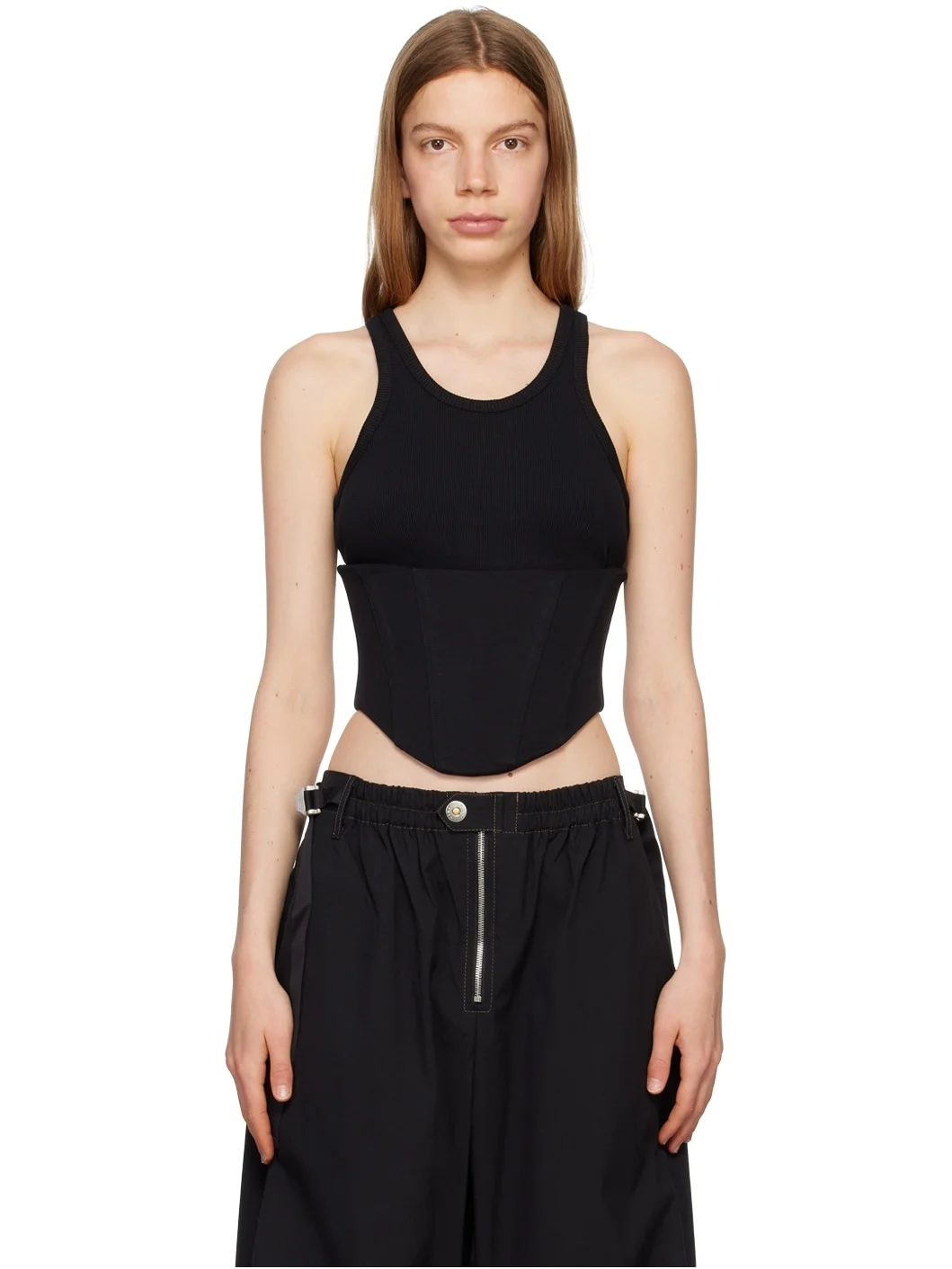 Rib knit stretch organic cotton tank top. · Layered construction · Crewneck · Boning at front · Asymmetric hem · Zip closure at back Supplier color: Black Body 1: 100% organic cotton. Body 2: 98% organic cotton, 2% elastane. Made in Portugal 232417F111014