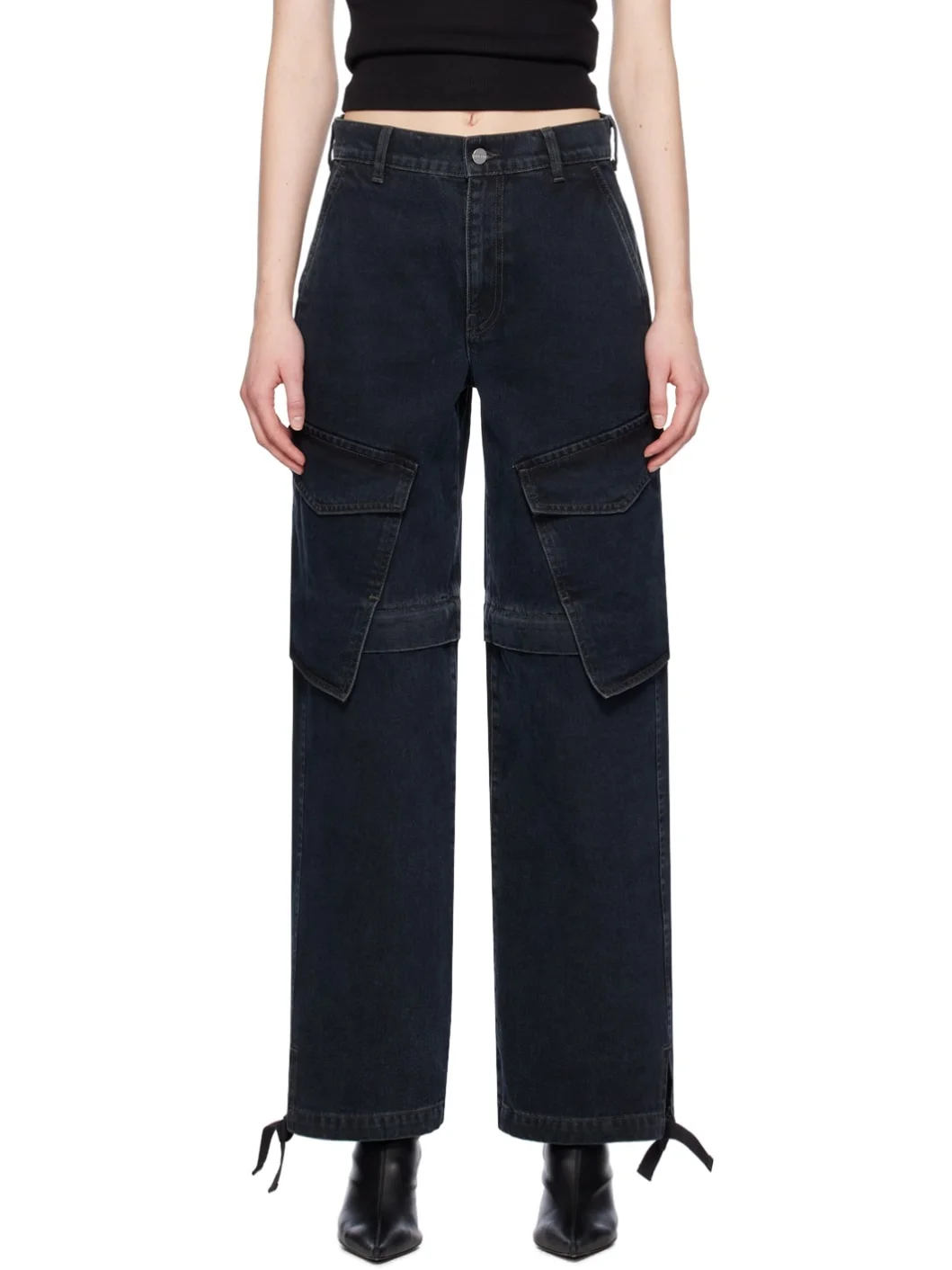 Relaxed-fit straight-leg garment-dyed non-stretch denim jeans. Fading throughout. · Belt loops and concealed drawstring at waistband · Four-pocket styling · Zip-fly · Detachable panel at legs · Drawstring at vented cuffs · Cargo pocket at outseams · Leather logo patch at back waistband Supplier color: Black 100% cotton. Made in Turkey 241417F087018