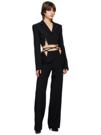 Straight-leg plain-woven polyester and wool-blend trousers. · Wraparound self-tie straps and cutouts at waist · Four-pocket styling · Creased legs · Concealed zip closure at back Supplier color: Black