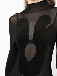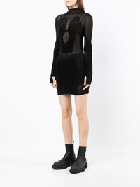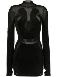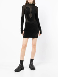 Chenille intarsia mini dress Highlights - Jet black - Fine knit - Semi-sheer construction - Round neck - Long sleeves - Fitted waistline Imported Composition Body: Viscose 52%, Nylon 45%, Elastane 3% SIZE & FIT Model measurements Height 5 ft 11 in(1.8 m) Bust/Chest 28.34 in(72 cm) Hips 35.43 in(90 cm) Waist 23.62 in(60 cm) FittingInformation This piece fits true to size. We recommend you get your regular size Made with a mid-weight stretch fabric Washing instructions Dry Clean Only