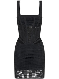 corset-style crochet-knit minidress Highlights - Black - Crochet knit - Cut-out detailing - Square neck - Concealed rear zip fastening - Sleeveless - Corset style - Partial lining - Straight hem - Thigh-length Imported Composition Viscose 65%, Nylon 35% Washing instructions Read Manufacturer Guidelines