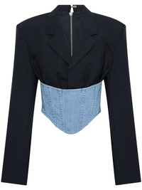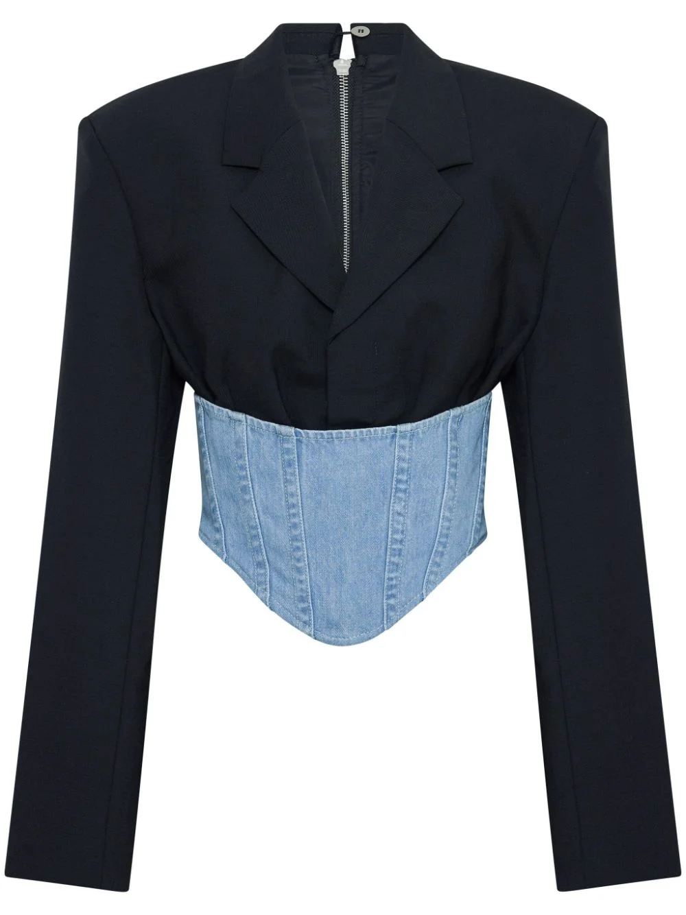 cropped corset-style blazer Highlights - Black - Cotton-wool blend - Corset style - Rear zip fastening - Peak lapels - Long sleeves - Cropped - Asymmetric hem Imported Composition Wool 100%, Cotton 100% Washing instructions Dry Clean Only