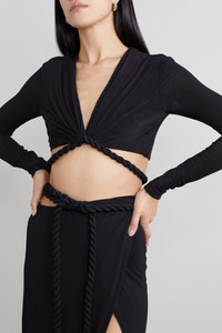 Cropped stretch-jersey wrap top