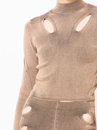cut-out cropped sweater Highlights - Sand beige - Cut-out detailing - Ribbed detailing - Round neck - Long sleeves - Straight hem Imported Composition Body: Viscose 78%, Polyester 22% SIZE & FIT Model measurements Height 6 ft 2 in(1.87 m) Bust/Chest 34.25 in(87 cm) Hips 36.22 in(92 cm) Waist 29.52 in(75 cm) FittingInformation This piece fits true to size. We recommend you get your regular size Cut for a slim fit Made with a mid-weight fabric