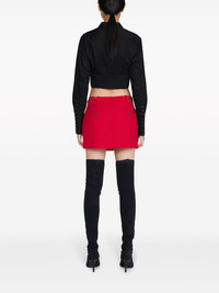 cut-out wrap miniskirt Highlights - Bright red - Wool blend - Wrap design - Cut-out detailing - Mid-rise - Rear zip fastening - Adjustable side straps - Two side flap pockets - Two rear button-fastening jetted pockets - Thigh-length - Straight hem Imported Composition Wool 96%, Elastane 4% Washing instructions Read Manufacturer Guidelines