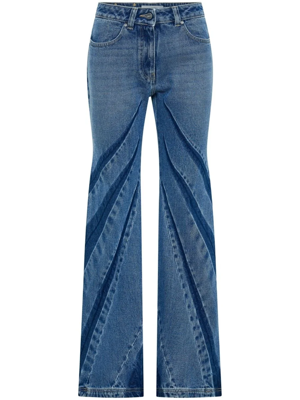 darted bootcut jeans Highlights - Blue - Organic cotton - Denim - Dart detailing - Belt loops - Logo patch to the rear - Classic five pockets Imported Composition Organic Cotton 100% SIZE & FIT Measurement FRONT RISE 10.43 in(26.5 cm) WAIST 28.74 in(73 cm) HIPS 37 in(94 cm) Washing instructions Read Manufacturer Guidelines