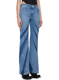 Flared non-stretch denim jeans. Fading and whiskering throughout. · Belt loops · Four-pocket styling · Zip-fly · Darts at front and back · Logo plaque at back waistband · Logo-engraved silver-tone hardware · Contrast stitching in yellow Supplier color: American blue 100% cotton. Made in Portugal 241417F069003