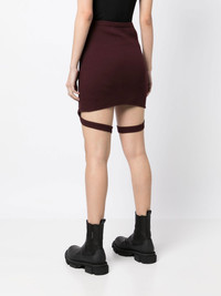 Double Lock mini skirt wine red cotton blend high waist wraparound style pencil design Imported Composition Cotton 91%, Spandex/Elastane 9% SIZE & FIT Model measurements Height 5 ft 10 in(1.78 m) Bust/Chest 33.46 in(85 cm) Hips 35.43 in(90 cm) Waist 24.4 in(62 cm) FittingInformation This piece fits true to size. We recommend you get your regular size Cut for a slim fit Made with a mid-weight fabric Washing instructions Dry Clean Only