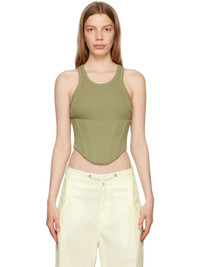 Rib knit stretch organic cotton tank top. · Layered construction · Crewneck · Boning at front · Asymmetric hem · Zip closure at back Supplier color: Sage Body 1: 100% organic cotton. Body 2: 98% organic cotton, 2% elastane. Made in Portugal 232417F111015