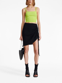 gathered ribbed-knit miniskirt Highlights - Black - Cotton blend - Ribbed knit - Gathered detailing - Tape detailing - Tonal hardware - Elasticated waistband - Pull-on style - Asymmetric hem - Above-knee length Imported Composition Body: Cotton 69%, Nylon 31% Washing instructions Dry Clean Only