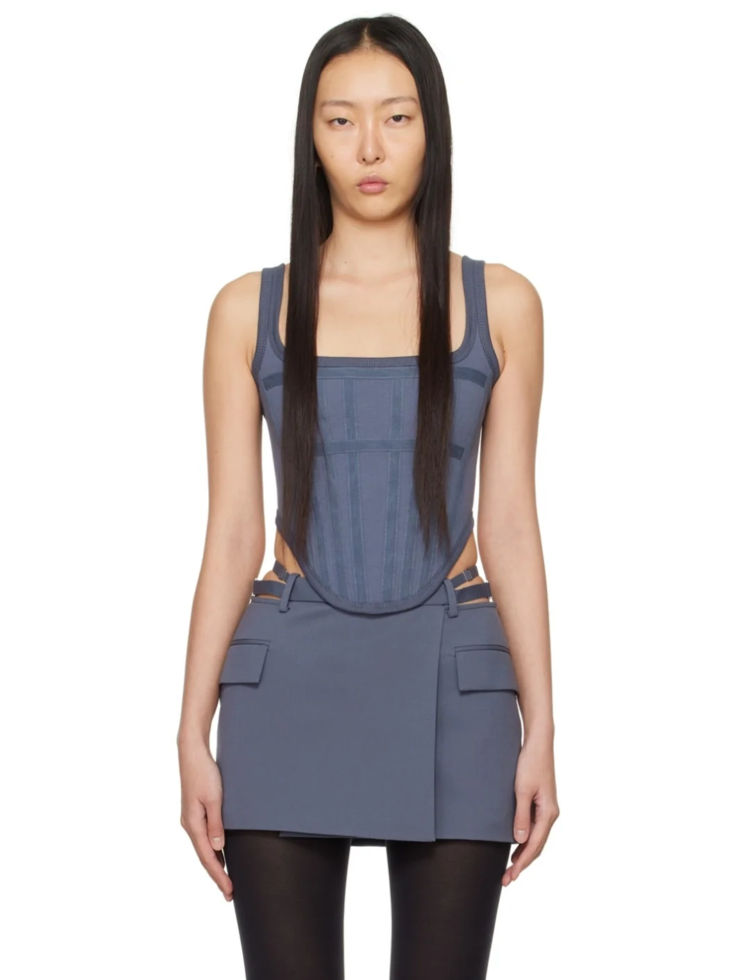 Organic cotton jersey corset-style tank top. Boning and canvas trim throughout. · Rib knit square neckline, hem, and armscyes · Asymmetric hem · Zip closure at back · Logo-engraved silver-tone hardware Supplier color: Asphalt 100% organic cotton. Made in Portugal 241417F111036