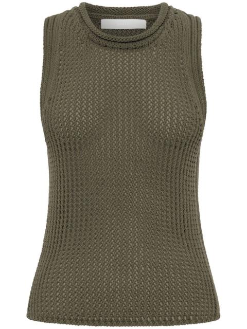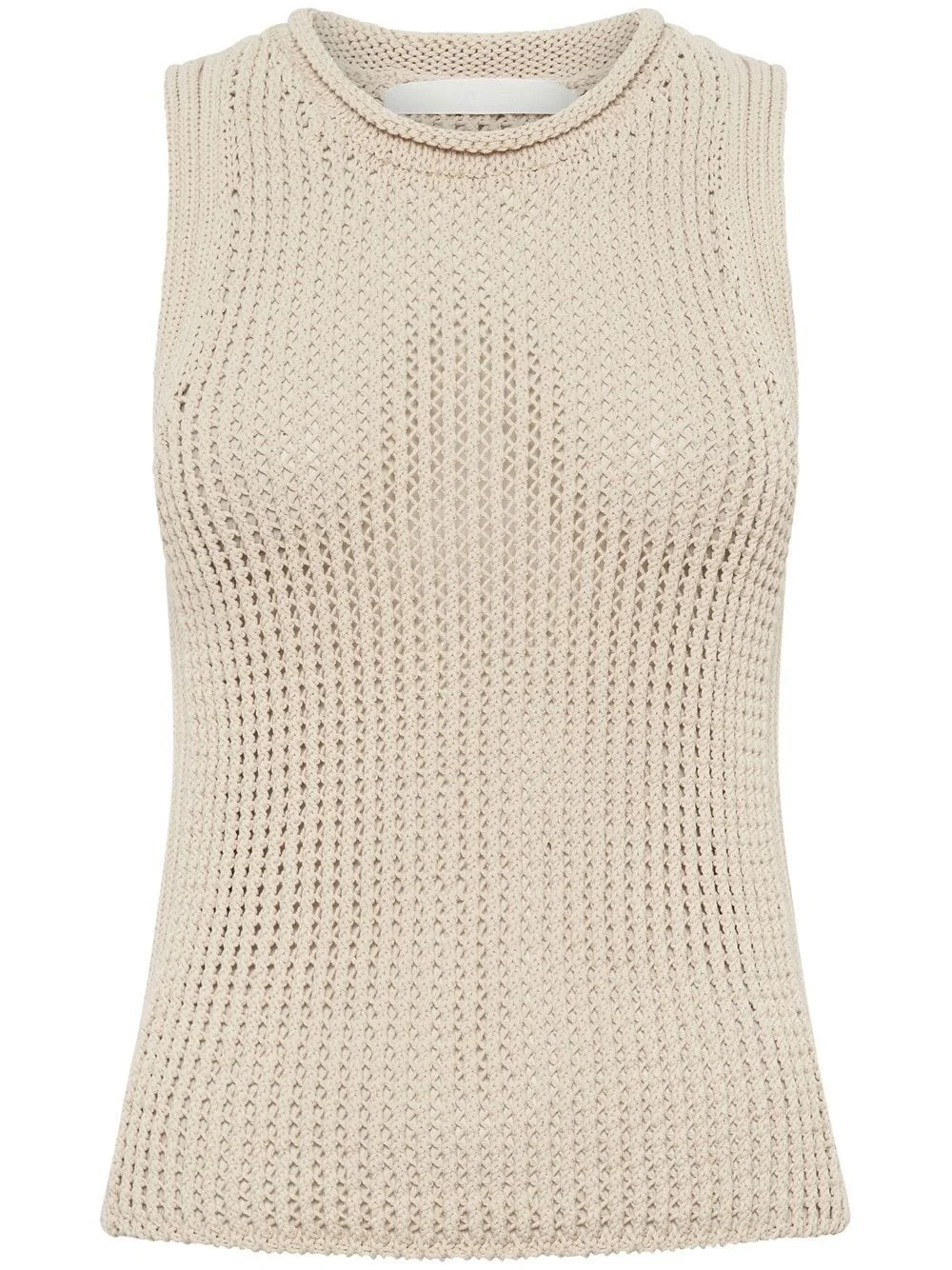 Grid Mesh tank top ivory white cotton mesh detailing round neck sleeveless straight hem Imported Composition Body: Cotton 100% SIZE & FIT Measurement BUST 26.37 in(67 cm) LENGTH 22.2 in(56.4 cm) Shoulder Width 9.37 in(23.8 cm) WAIST 24.8 in(63 cm) Washing instructions Dry Clean Only