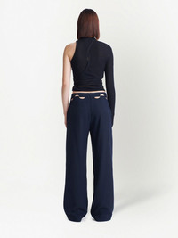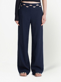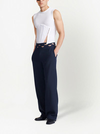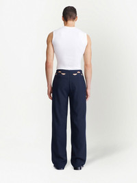 hinge-seam straight trousers navy blue stretch-design cut-out detailing mid-rise rear zip fastening two side slit pockets straight leg Imported Composition Polyamide 99%, Elastane 1% SIZE & FIT Measurement BACK RISE 13.58 in(34.5 cm) FRONT RISE 10.23 in(26 cm) Hem Width 22.04 in(56 cm) HIPS 40.15 in(102 cm) INSIDE LEG 32.48 in(82.5 cm) WAIST 30.7 in(78 cm)