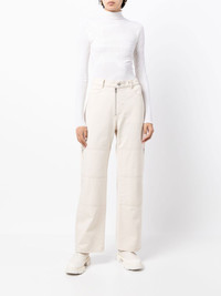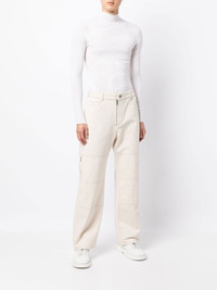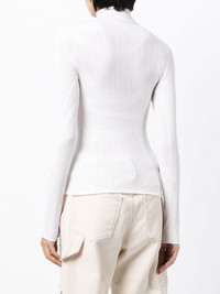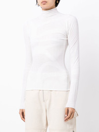 intarsia-knit ribbed jumper off-white merino-blend intarsia knit ribbed detailing roll neck long sleeves straight hem Imported Composition Merino 83%, Nylon 8%, Polyester 7%, Elastane 2% SIZE & FIT Model measurements Height 5 ft 10 in(1.77 m) Bust/Chest 31.49 in(80 cm) Hips 35.43 in(90 cm) Waist 25.19 in(64 cm) FittingInformation This piece is unisex. Please take care when selecting your size Cut for a slim fit for both men and women Made with a mid-weight stretch fabric