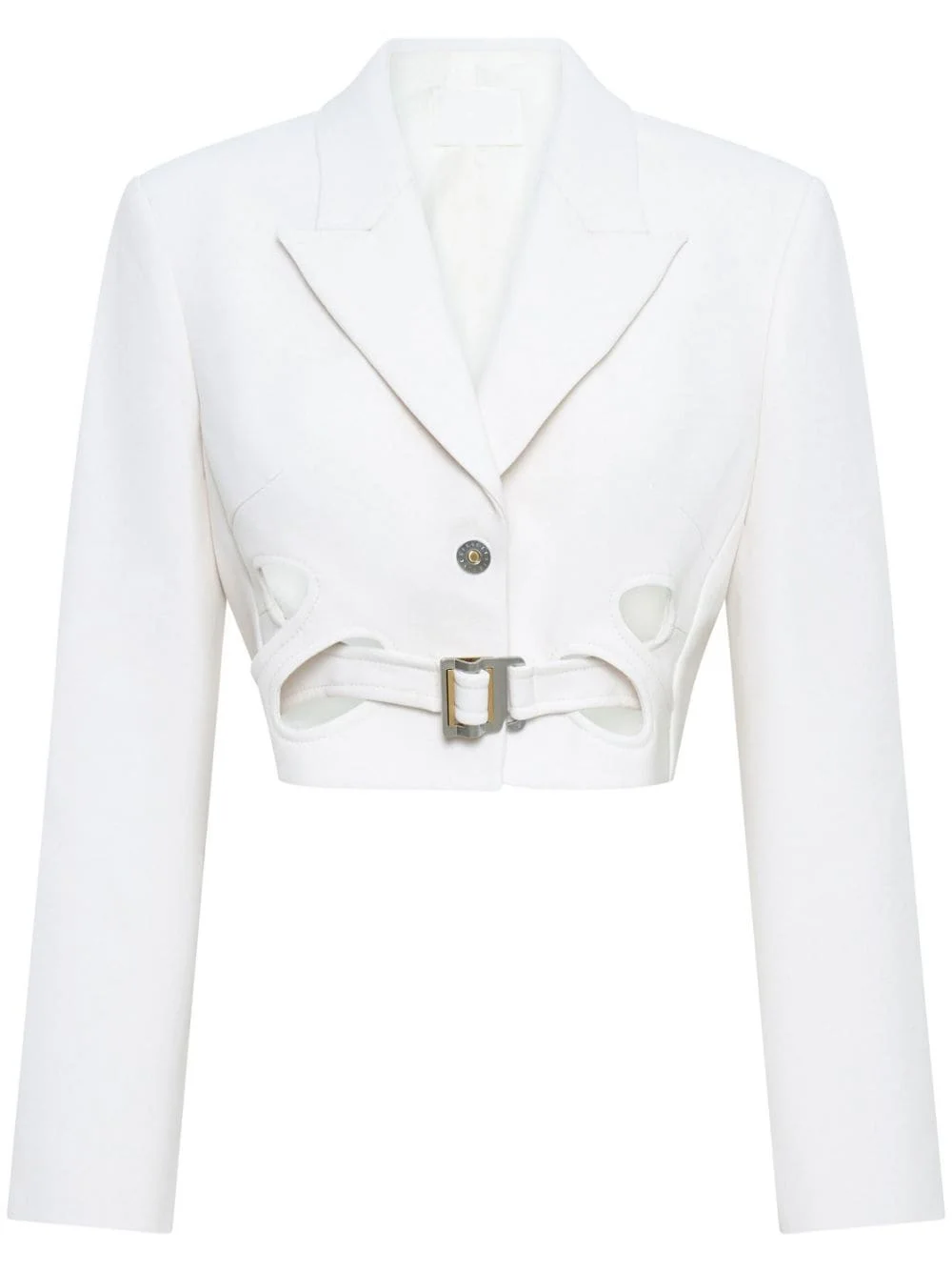 Interloop belted blazer Highlights - White - Peak lapels - Front button fastening - Long sleeves - Belted waist - Cropped Imported Composition Body: Polyester 53%, Wool 42%