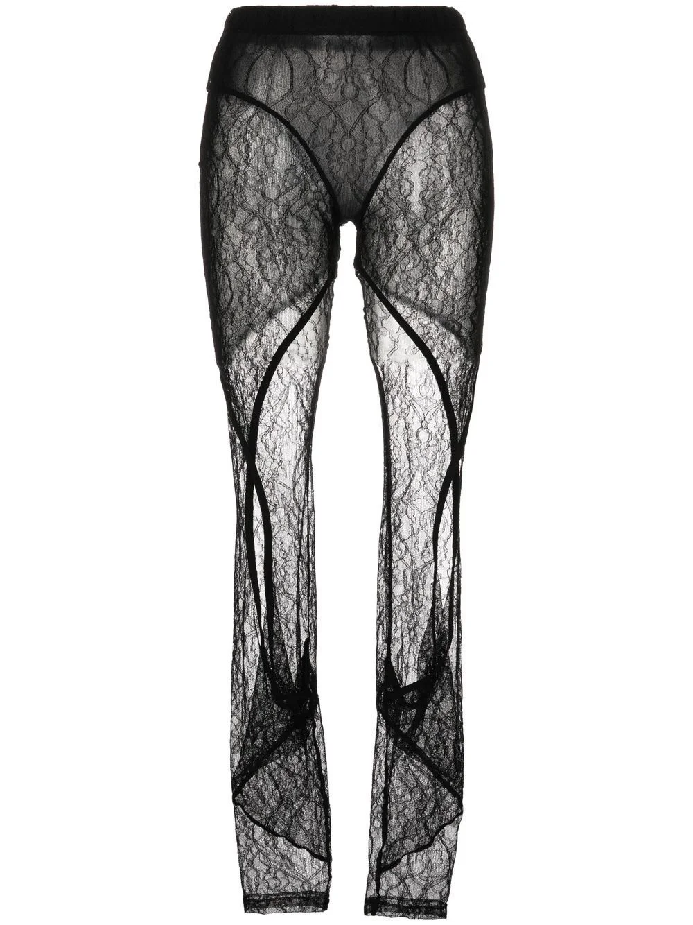 lace high-waisted leggings DION LEE is a clothing brand from Sydney known for blending modern aesthetics with traditional tailoring. A fine example of its signature style, are these black high-waisted leggings, cut from interlocking layers of lace. Made in Italy Composition Outer: Polyamide 79%, Elastane 21% Lining: Polyester 92%, Elastane 8% SIZE & FIT Model measurements Height 5 ft 10 in(1.78 m) Bust/Chest 33.46 in(85 cm) Hips 35.43 in(90 cm) Waist 24.4 in(62 cm) FittingInformation This piece fits true to size. We recommend you get your regular size Cut for a close fit Made with a lightweight stretch fabric Washing instructions Dry Clean Only