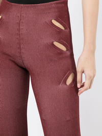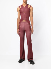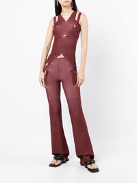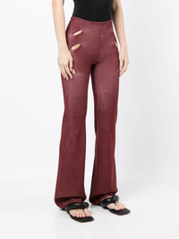 Lock slit-detail trousers oxblood red knitted construction high waist slit detailing decorative buckle detail skinny cut Imported Composition Body: Viscose 78%, Polyester 22% SIZE & FIT Model measurements Height 5 ft 10 in(1.78 m) Bust/Chest 30.31 in(77 cm) Hips 34.64 in(88 cm) Waist 25.59 in(65 cm) FittingInformation This piece fits true to size. We recommend you get your regular size Designed to be fitted at the waist and through the thigh, loose from the knee Made with a mid-weight fabric Washing instructions Dry Clean Only
