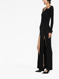 Mobious slit gown Dion Lee presents the Mobious gown for SS23 in a sleek black hue, cut in a ruched halterneck design. The dress is finished with front slits for a sultry feel. Imported Composition Viscose 72%, Polyester 28% SIZE & FIT Model measurements Height 5 ft 10 in(1.78 m) Bust/Chest 29.92 in(76 cm) Hips 34.64 in(88 cm) Waist 23.62 in(60 cm) Measurement BUST 27.55 in(70 cm) HIPS 29.52 in(75 cm) LENGTH 58.42 in(148.4 cm) SLEEVE LENGTH 27.32 in(69.4 cm) WAIST 23.62 in(60 cm) FittingInformation This piece fits true to size. We recommend you get your regular size Designed for a close fit at the bust, waist and hips Made with a mid-weight fabric Washing instructions Dry Clean Only