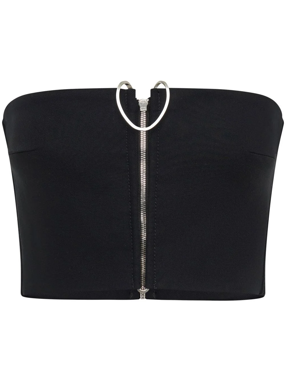 Mobius bandeau top Highlights - Black - Organic cotton blend - Cropped - Silver-tone hardware - Plunging v-neck - Rear zip fastening - Strapless Imported Composition Organic Cotton 98%, Elastane 2% SIZE & FIT Measurement BUST 29.52 in(75 cm) LENGTH 7.75 in(19.7 cm) WAIST 24.21 in(61.5 cm) Washing instructions Dry Clean Only