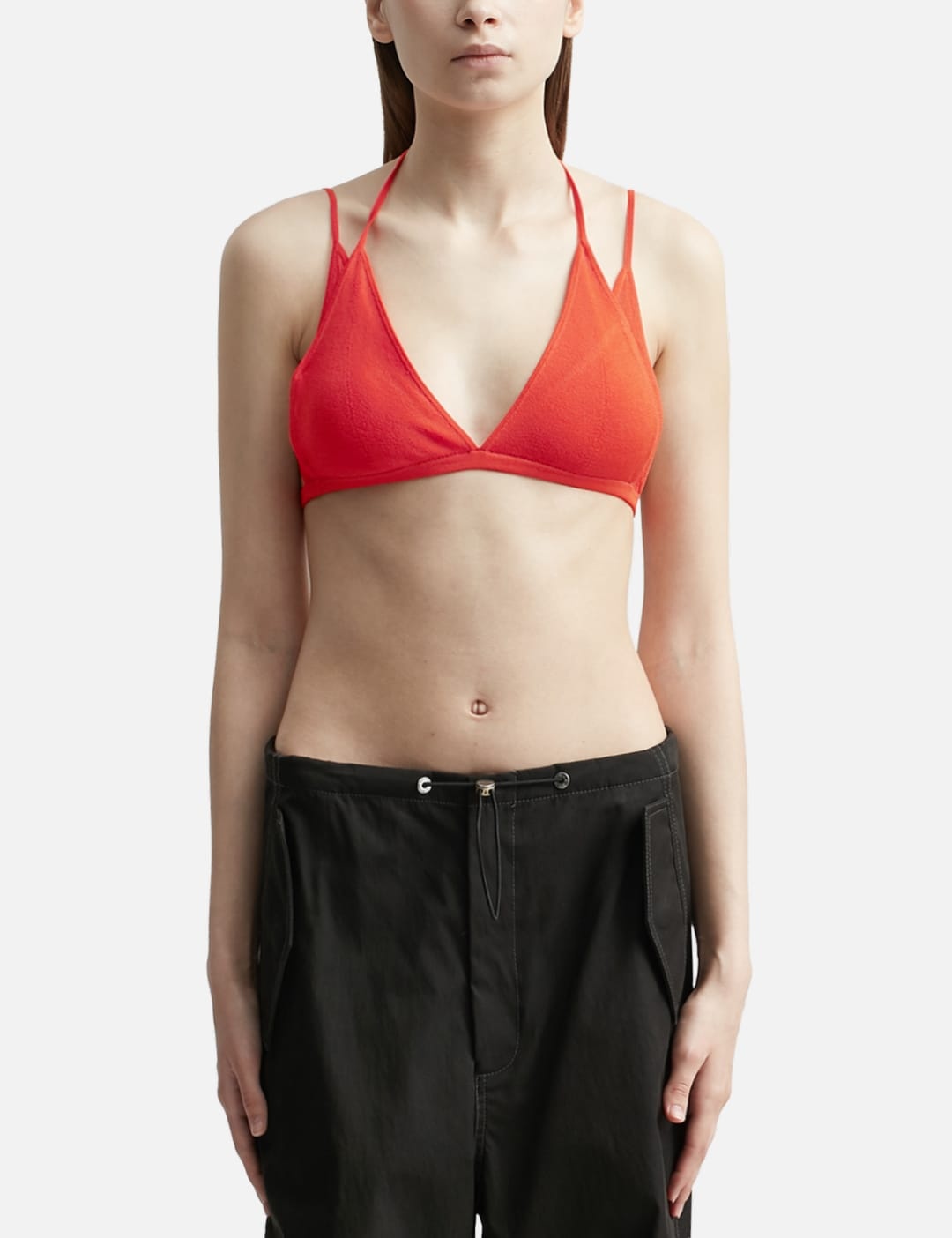 butterfly-style bra top Highlights - Flame red - Double layer - Butterfly style - V-neck - Spaghetti straps - Rear tie fastening Imported Composition Body: Viscose 88%, Polyester 12%