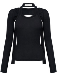 Modular open-back top black stretch-cotton cut-out detailing open back crew neck long sleeves straight hem Imported Composition Body: Cotton 95%, Elastane 5% SIZE & FIT Measurement BUST 21.45 in(54.5 cm) LENGTH 17.08 in(43.4 cm) SLEEVE LENGTH 29.29 in(74.4 cm) WAIST 22.04 in(56 cm)