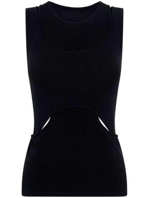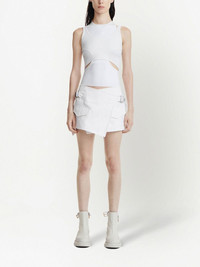 Interlink knitted tank top ivory white ribbed knit layered design cut-out detailing crew neck sleeveless Imported Composition Nylon 34%, Cotton 29%, Viscose 27%, Polyester 7%, Elastane 3% SIZE & FIT Measurement BUST 27.55 in(70 cm) LENGTH 24.48 in(62.2 cm) Shoulder Width 11.96 in(30.4 cm) WAIST 27.16 in(69 cm)