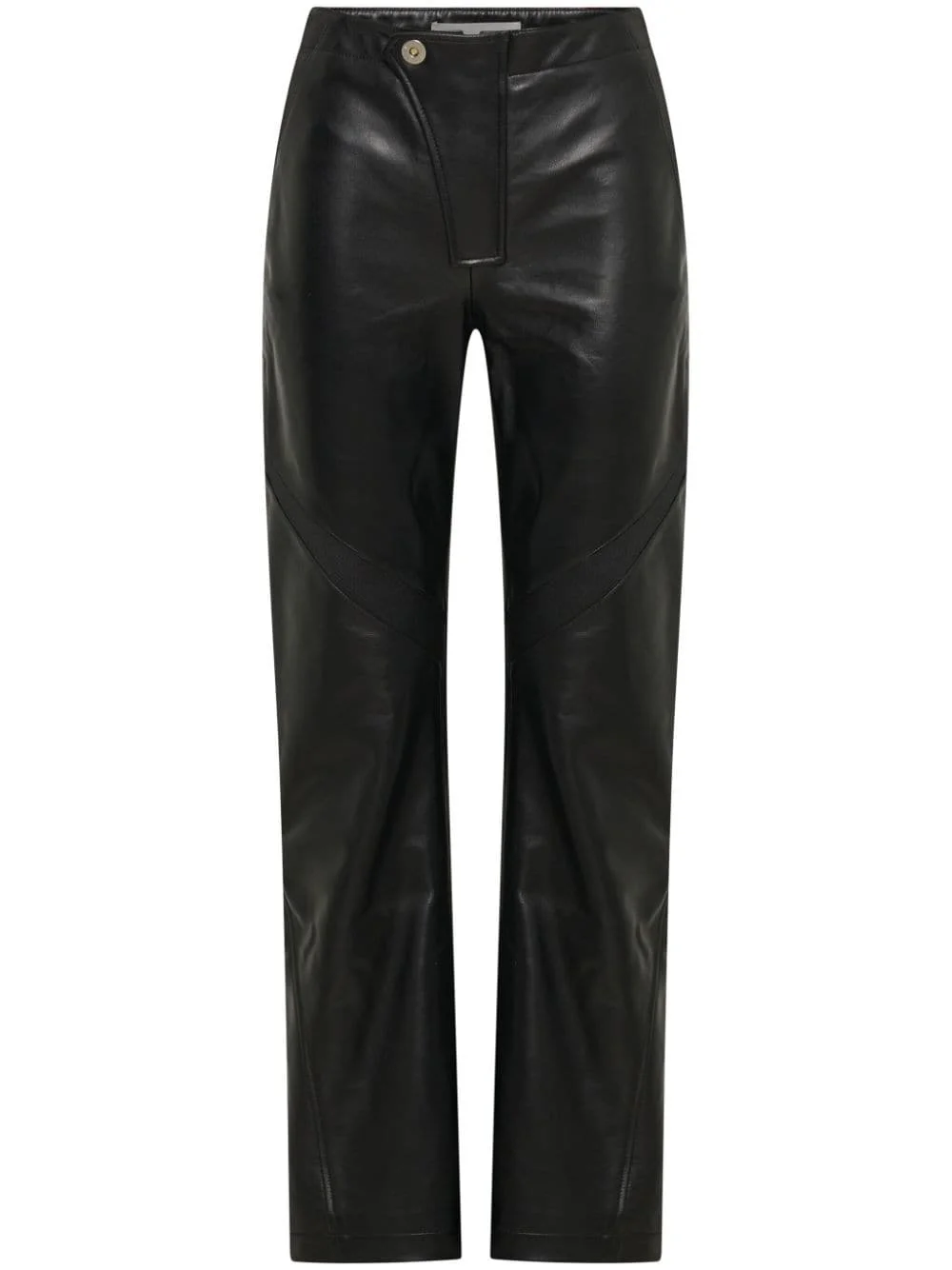 panelled leather trousers Inspired by motorcycle styles, these DION LEE trousers are crafted from leather in a daring, low-rise silhouette. Jersey panels contour the silhouette, which is completed with zip details on the flared ankles. Highlights - Black - Leather - Panelled design - Low-rise - Concealed fly and button fastening - Two side slit pockets - Ankle zips - Flared Imported Composition Leather 100% Washing instructions Dry Clean Only