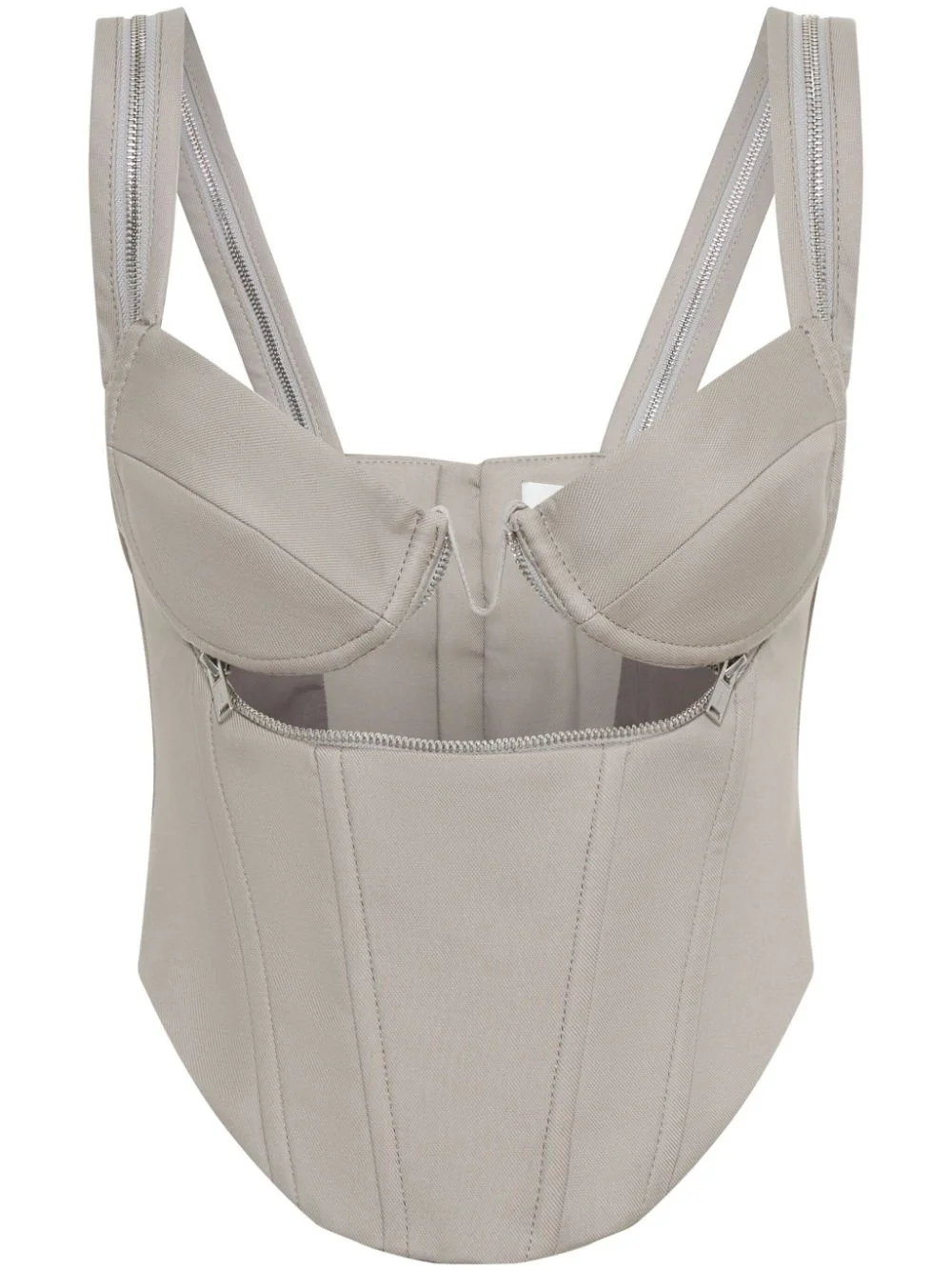 panelled zipped bustier top Highlights - Alloy grey - Stretch organic cotton - Bustier-style neckline - Cut-out detailing - Sleeveless - Rear zip fastening - Curved waistband Imported Composition Organic Cotton 98%, Elastane 2% Washing instructions Dry Clean Only