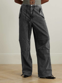 EDITORS'NOTES Dion Lee always finds a way to remix jeans. This stone-washed 'Parachute' pair has a drawstring low-slung waist that's slightly elasticated. Cut for a relaxed fit, this style has boyfriend style legs with snap-closing side pockets. SIZE & FIT - Fits true to size, take your normal size - Boyfriend style, designed to be worn loose and low on the hips - Drawstring waist, designed for a flexible fit - Mid-weight, non-stretchy fabric - Size Small jeans have an inside leg of 31.5"/ 80cm - Model is 175cm/ 5'9" and is wearing a size Small DETAILS & CARE - Gray denim - Snap and concealed zip fastening at front - 100% cotton - Machine wash