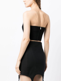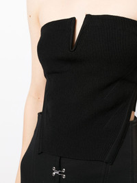 angled rib bustier corset black square neck cut-out detailing fitted waistline pointed tip Imported Composition Body: Viscose 65%, Nylon 34% SIZE & FIT Model measurements Height 5 ft 11 in(1.8 m) Bust/Chest 28.34 in(72 cm) Hips 35.43 in(90 cm) Waist 23.62 in(60 cm) Measurement BUST 14.76 in(37.5 cm) LENGTH 12.04 in(30.6 cm) WAIST 11.22 in(28.5 cm) FittingInformation This piece fits true to size. We recommend you get your regular size Cut for a close fit Made with a mid-weight stretch fabric Washing instructions Dry Clean Only