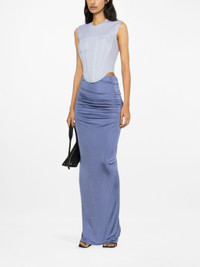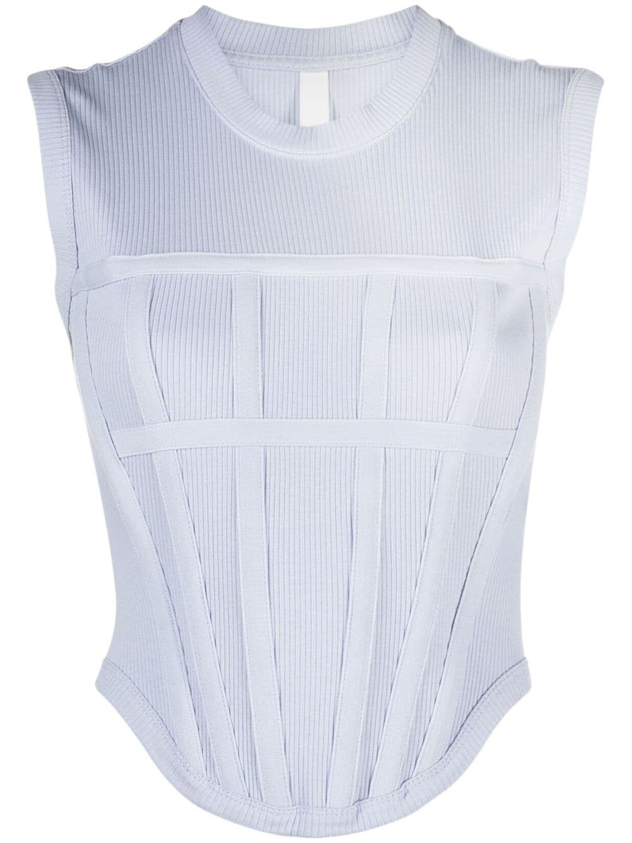 ribbed corset top from DION LEE featuring glacier blue, organic cotton, ribbed finish, corset boning, crew neck, sleeveless and curved crop hem. This item is made from at least 50% organic materials.. Size & Fit Model Measurements: Height: 1.78 m Bust/Chest: 80.0 cm Hips: 89.0 cm Waist: 60.0 cm Model wears size S Fabric and Care Designer Style ID: C3094P23 Designer Colour: GLACIER Composition: Spandex/elastane 2%, Organic cotton 98% Washing instructions: Dry Clean Only Made in Portugal