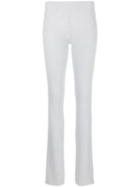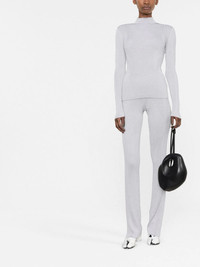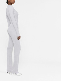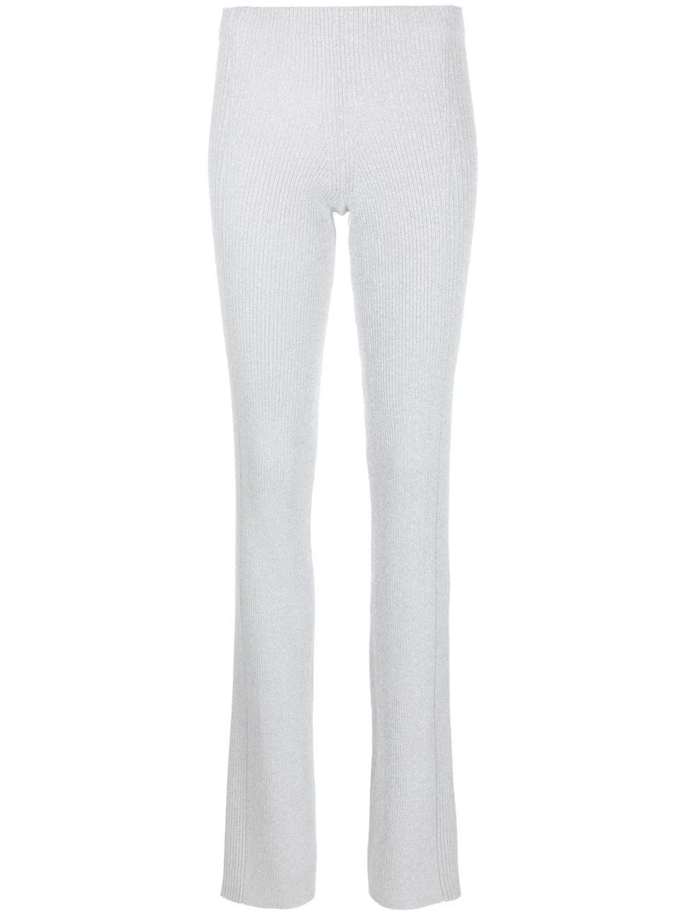 ribbed-knit slip-on trousers Dion Lee offers a sleek take on knitwear with these slip-on trousers. This ribbed knit construction is presented in a silver hue and boasts a flared silhouette for an elevated touch. Made in Italy Composition Polyester 66%, Wool 34% SIZE & FIT Model measurements Height 5 ft 10 in(1.77 m) Bust/Chest 31.49 in(80 cm) Hips 33.85 in(86 cm) Waist 22.44 in(57 cm) Measurement INSIDE LEG 36.61 in(93 cm) HIPS 26.77 in(68 cm) WAIST 22.04 in(56 cm) FittingInformation This piece fits true to size. We recommend you get your regular size Designed to be fitted at the waist and hips, loose over the leg Made with a mid-weight fabric Washing instructions Dry Clean Only