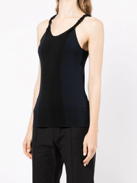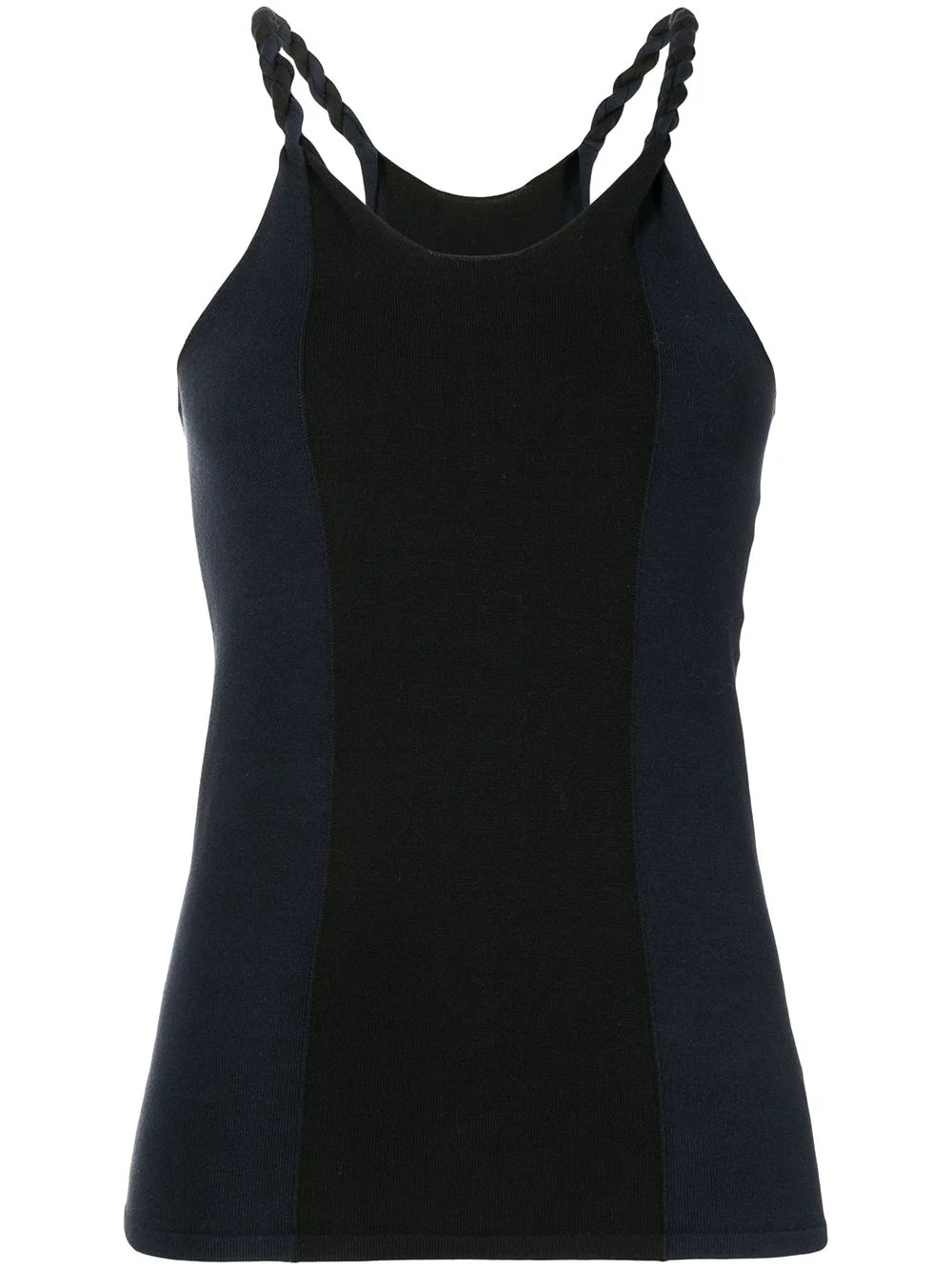 rope-detail tank top Spun from a soft cotton blend in navy blue and black tones, this tank top from Dion Lee is detailed with two rope-style twisted shoulder straps. Imported Composition Body: Cotton 55%, Nylon 44%, Spandex/Elastane 1% SIZE & FIT Model measurements Height 5 ft 11 in(1.8 m) Bust/Chest 28.34 in(72 cm) Hips 35.43 in(90 cm) Waist 23.62 in(60 cm) Measurement BUST 30.7 in(78 cm) LENGTH 24.05 in(61.1 cm) WAIST 30.7 in(78 cm) FittingInformation This piece fits true to size. We recommend you get your regular size Cut for a close fit Made with a mid-weight fabric Washing instructions Dry Clean Only