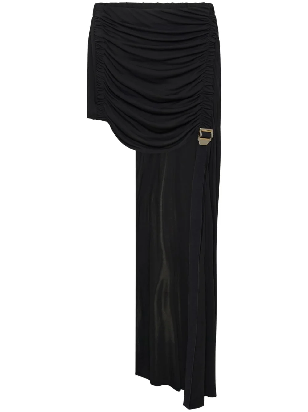safety-slider gathered mini skirt black gathered detailing silver-tone hardware draped design elasticated waistband elasticated straps asymmetric design Imported Composition Body: Viscose 72%, Polyamide 28% Washing instructions Dry Clean Only