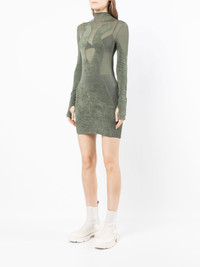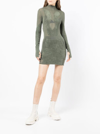 Chenille intarsia mini dress Highlights - Light green - Fine knit - Semi-sheer construction - High neck - Long sleeves - Fitted waistline Imported Composition Body: Viscose 52%, Nylon 45%, Elastane 3% SIZE & FIT Model measurements Height 5 ft 11 in(1.8 m) Bust/Chest 28.34 in(72 cm) Hips 35.43 in(90 cm) Waist 23.62 in(60 cm) FittingInformation This piece fits true to size. We recommend you get your regular size Cut for a close fit Made with a mid-weight stretch fabric Washing instructions Dry Clean Only