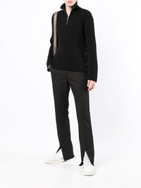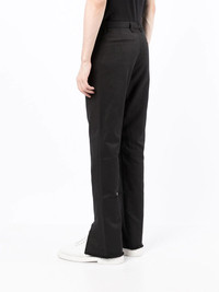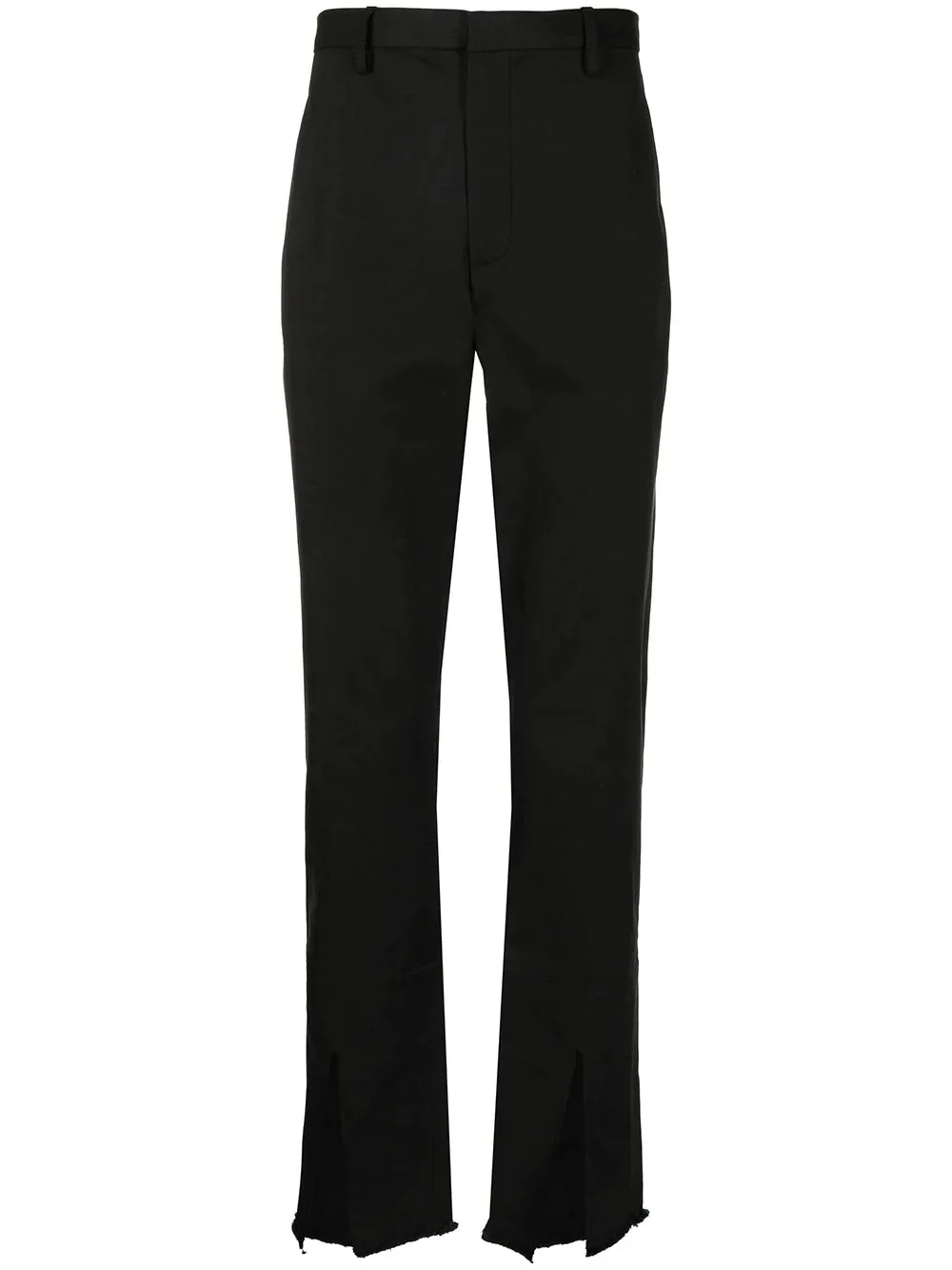 split fray-trim trousers black cotton-blend slit detailing exposed-seam detailing frayed detailing concealed front fastening belt loops two side slash pockets straight leg Imported Composition Cotton 58%, Polyester 36%, Nylon 6% SIZE & FIT Model measurements Height 5 ft 11 in(1.8 m) Bust/Chest 28.34 in(72 cm) Hips 35.43 in(90 cm) Waist 23.62 in(60 cm) FittingInformation This piece is unisex. Please take care when selecting your size Designed for a loose fit for men and an oversized fit for women Made with a mid-weight non-stretch fabric Washing instructions Dry Clean Only