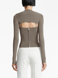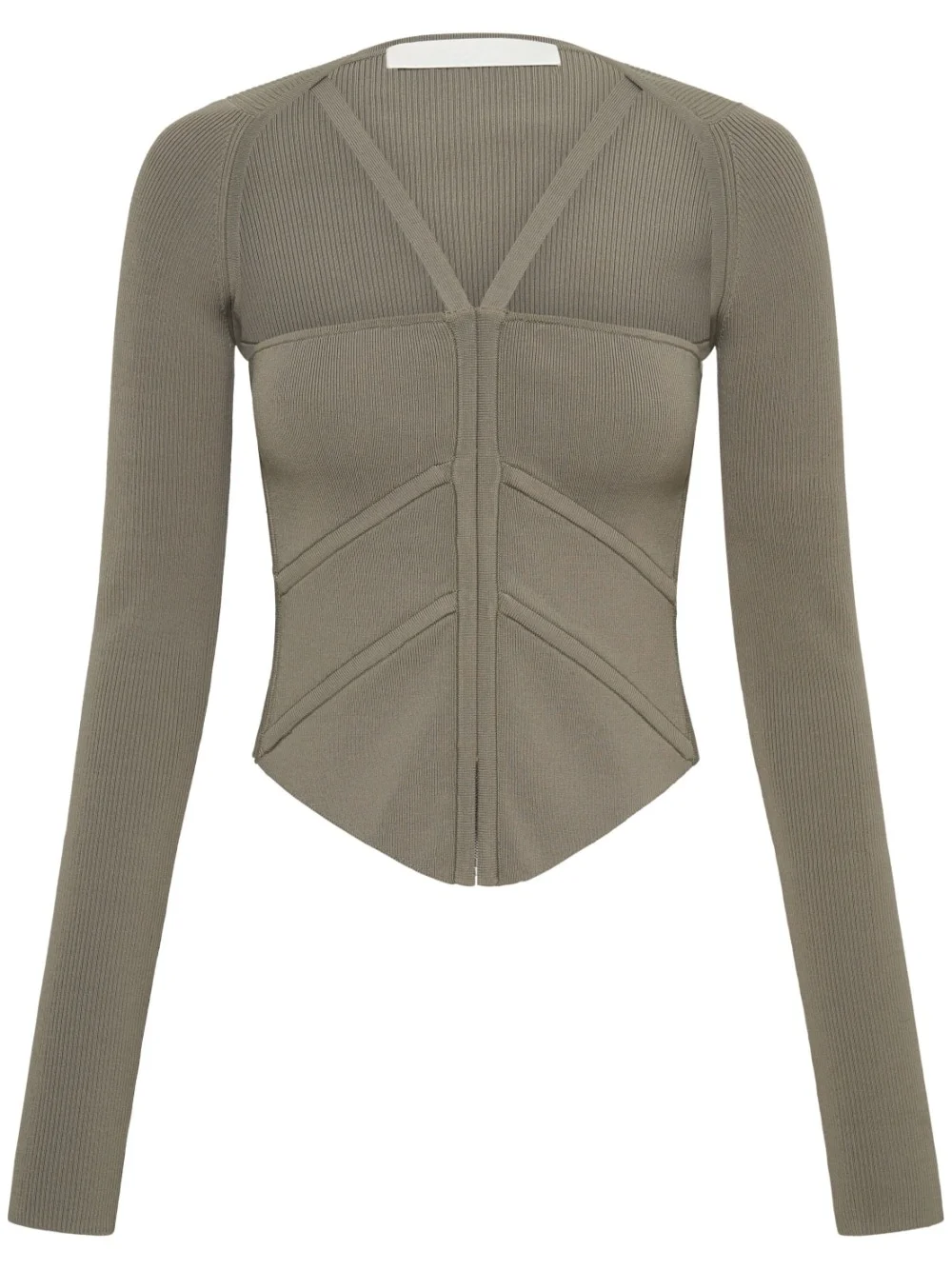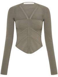 square-neck corset-style top Highlights - Slate grey - Square neck - Corset style - Rear zip fastening - Detachable sleeves - Long sleeves - Cropped Imported Composition Body: Viscose 67%, Nylon 33% Washing instructions Dry Clean Only
