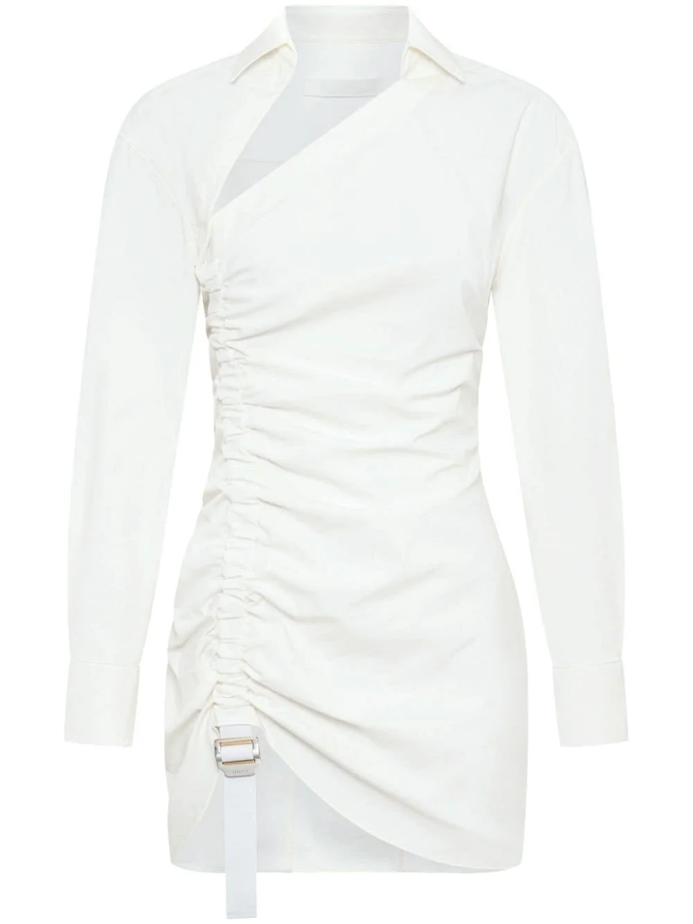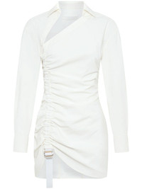 asymmetric gathered mini dress Highlights - Ivory white - Cotton blend - Stretch-design - Asymmetric design - Strap detailing - Gathered detailing - Asymmetric neck - Spread collar - Long sleeves - Buttoned cuffs - Thigh-length - Asymmetric hem Imported Composition Cotton 60%, Polyamide 35%, Elastane 5% SIZE & FIT FittingInformation Designed for a slim fit that sits just away from the body offering a close yet comfortable fit Made from a midweight stretch fabric, this piece offers elasticity and flexibility when worn Washing instructions Dry Clean Only
