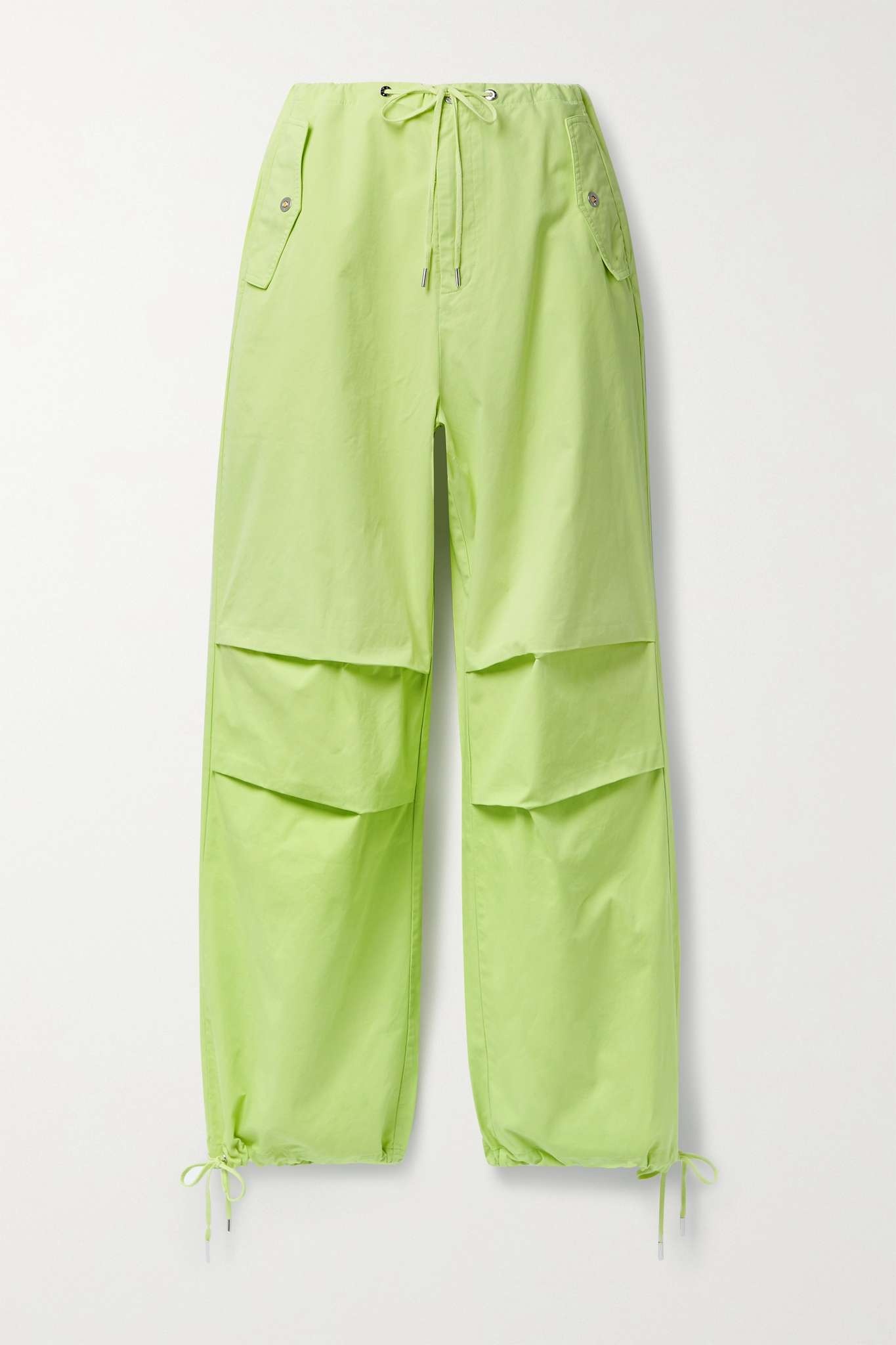 EDITORS'NOTES Dion Lee's 'Sunfade' pants come in a fresh 'Light Zest' shade that's perfect for spring. Modeled after sporty track styles, they have drawstring cuffs and sharp folds at the knees. Wear yours with a simple top and sneakers. SIZE & FIT - Fits true to size, take your normal size - Mid-rise, designed for a relaxed fit, tapered at the hem - Drawstring waist, designed for a flexible fit - Lightweight, non-stretchy fabric - Model is 180cm/ 5’11” and is wearing a size Small DETAILS & CARE - Chartreuse cotton-twill - Snap and concealed zip fastening at front - 100% cotton - Hand wash or dry clean - Designer color: Light Zest