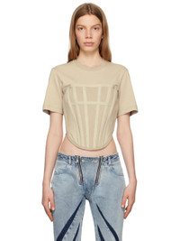 Organic cotton jersey T-shirt. · Paneled construction · Rib knit crewneck · Boning at front · Asymmetric hem Supplier color: Alloy Body 1: 100% organic cotton. Body 2: 98% organic cotton, 2% elastane. Made in Portugal 232417F110006