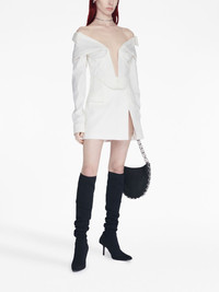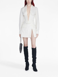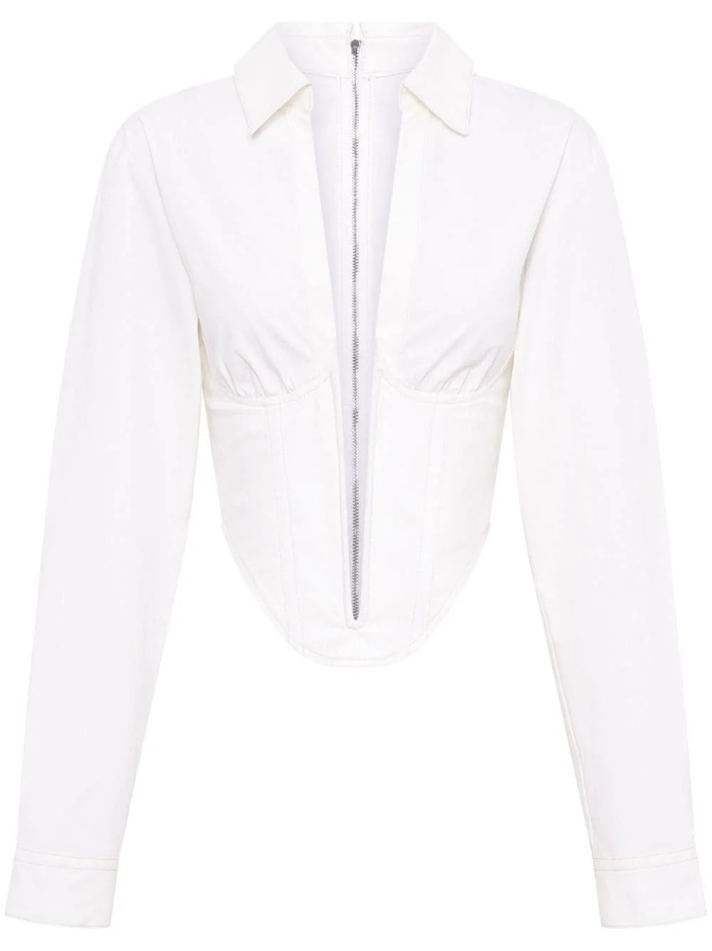V-wire long-sleeve corset shirt Highlights - Ivory white - Cotton blend - Corset style - Boned bodice - Gathered detailing - Pointed flat collar - Plunging v-neck - Exposed rear zip fastening - Long sleeves - Buttoned cuffs - Asymmetric hem Imported Composition Body: Cotton 60%, Polyamide 35% Washing instructions Dry Clean Only