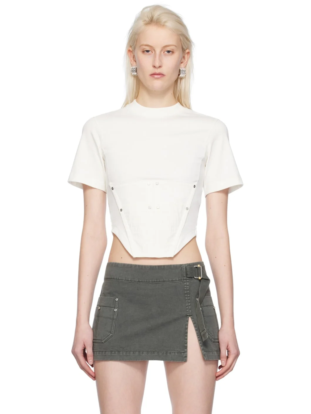 Organic cotton jersey T-shirt. · Rib knit crewneck · Utility pocket and rivets at front · Boning at front · Asymmetric hem · Logo-engraved silver-tone hardware Supplier color: Ivory Body: 100% organic cotton. Trim: 75% organic cotton, 25% recycled nylon. Made in Portugal 241417F110001