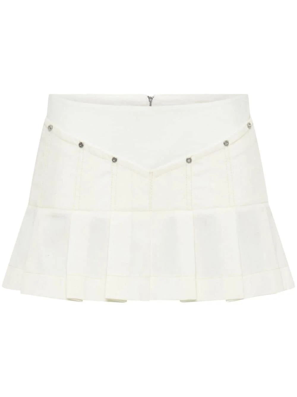 Wrench pleated mini skirt Highlights - Ivory white - Organic cotton blend - Twill weave - Pleat detailing - Rivet detailing - Low-rise - Flared - Rear zip fastening - Thigh-high Imported Composition Organic Cotton 75%, Recycled Polyamide 25%
