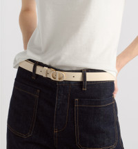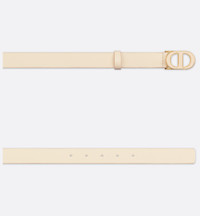 The 30 Montaigne belt is inspired by the hallmark namesake bag. Exemplifying House savoir-faire, the light ivory smooth calfskin style is enhanced by the iconic CD buckle in shiny gold-finish metal and tonal calfskin. The contemporary, elegant belt can be paired with jeans, a skirt or a dress. - 30 Montaigne CD buckle - Christian Dior Paris signature on the interior - Shiny gold-finish metal and calfskin detailing - 90% calfskin, 10% brass - Made in Italy Size & Fit - Width: 25 mm / 1 inch - Buckle dimensions: 4.3 x 2.9 cm / 1.5 x 1 inches (Length x Height) - Using our personalized tool will provide you with the best size recommendation - For more information, please review the size guide