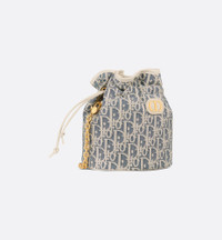 The mini bucket bag with cord enhances the 30 Montaigne line with a gracefully casual design. The style elegantly combines light biscuit smooth calfskin with blue chambray — a lightweight cotton denim embroidered with ultra-durable raffia thread forming the iconic Dior Oblique motif. Accented by an antique gold-finish metal CD signature on the front, it reveals a drawstring compartment to hold all the essentials. The adjustable and removable chain strap has a leather insert that allows it to be comfortably carried by hand, worn over the shoulder or crossbody. - Main composition: cotton, calfskin and technical fabric - Lambskin and technical fabric lining - CD signature on the front - Drawstring closure - Interior compartment - Three card slots - Adjustable and removable chain with leather insert and antique gold-finish metal CD links - Dust bag included - Made in Italy Size & Fit - Dimensions: 16 x 18.5 x 13 cm / 6.5 x 7.5 x 5 inches (Length x Height x Width) - The size is suitable for a card holder and phone - Size and weight details may vary depending on the product's material