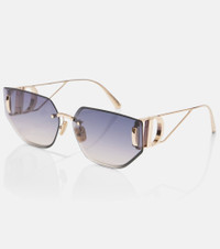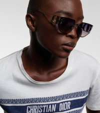 Inlaid with golden CD branding at the temples, these 30Montaigne B3U sunglasses from Dior Eyewear are a nod to one of the house's signature bags. They're made from rose gold-toned metal in an oversized cat-eye silhouette with tonal tinted lenses. Product Details - Frame material: metal - Frame color: rose gold - Lens filter category 2 - Lens color: violet - Made in Italy - Includes: cleaning cloth, case - The color of the case may vary - 100% UV protection - Item number: P01067263 Size & Fit - Lens width: 65mm-2.55" - Bridge size: 14mm-0.55" - Earpiece length: 135mm-5.3"