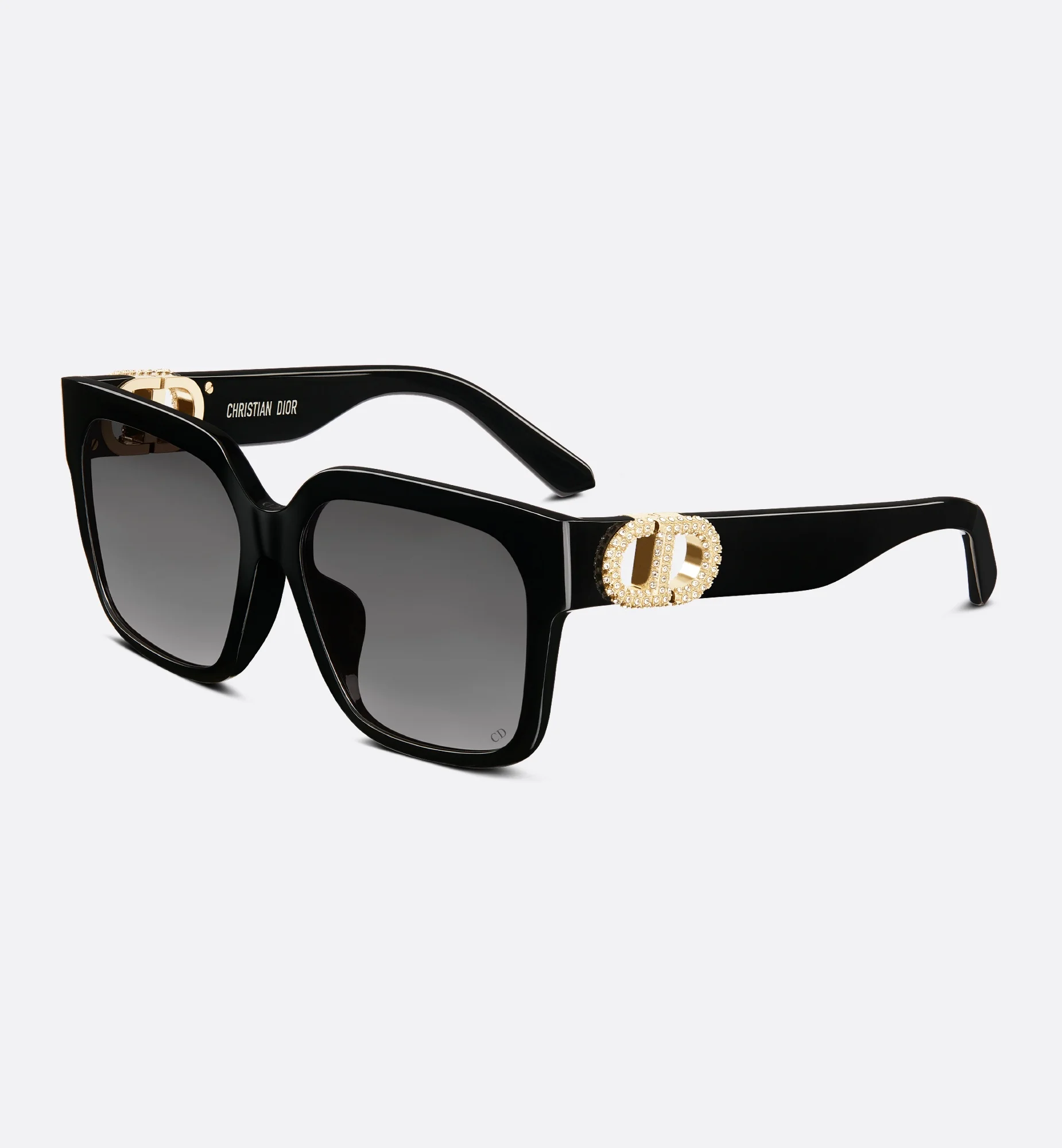 The 30Montaigne S11F sunglasses present a square shape with contemporary appeal. The black acetate frame is enhanced by a CD hinge in gold-finish metal with white Swarovski® crystals, an homage to the hallmark clasp of the namesake bag. Completed by gray gradient lenses, the elegant style will lend a couture touch to any look. Swarovski® is a registered trademark of Swarovski AG - Black acetate frame - Gray gradient lenses - CD signature hinge in gold-finish metal with white Swarovski® crystals - 100% UVA/UVB protection - Filter category: 3 - Suitable for prescription - Made in Italy Size & Fit - The nose pads are specially designed to adapt to lower nose bridges - Lenses: 56 mm / 2 inches, Bridge: 16 mm / 0.5 inch, Temples: 130 mm / 5 inches