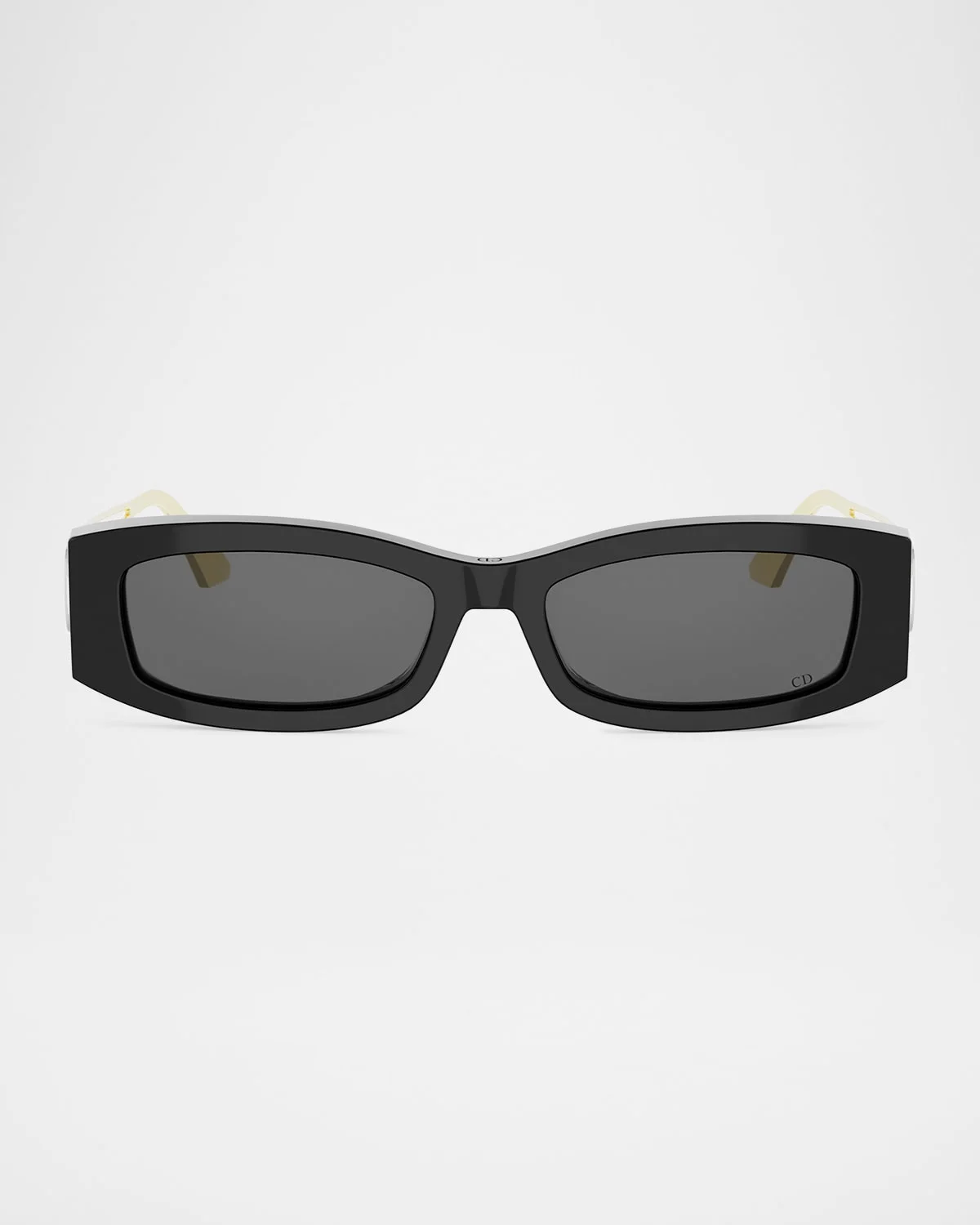 DIOR "30Montaigne S14I" rectangle sunglasses in twotone acetate CD hinge logo amp; CD laser logo on top nose Lens/bridge/temple (in mm): 54.317130 Solid lenses; logo on corner Saddle nose bridge Thin, tapered arms 100% UVA/UVB protection Made in Italy